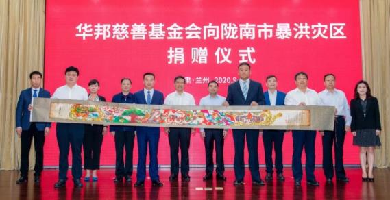 洪灾无情,人间有爱。9月15日,华邦慈善基金会在兰州向陇南市暴洪灾区捐赠500万元,支持陇南市抗洪救灾和灾后重建工作。甘肃省副省长、陇南市委书记孙雪涛,陇南市委副书记、市长崔景瑜,甘肃省广东商会会长、华邦控股集团董事局主席、华邦慈善基金会名誉理事长苏如春等出席捐赠仪式。