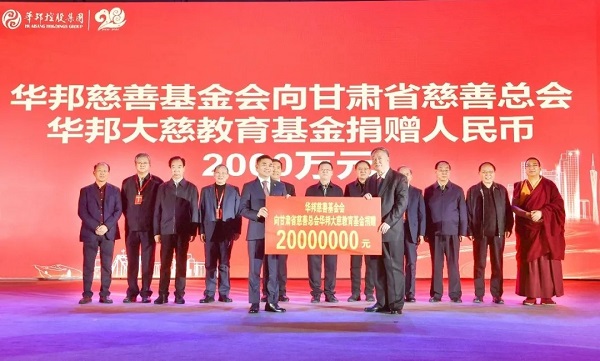 从善而行,华邦有为。2020年12月12日,在华邦20周年庆典上,由华邦慈善基金会和甘肃省慈善总会共同发起的甘肃省慈善总会华邦大慈教育基金成立,为华邦成立二十周年注入新内涵,也为华邦慈善基金会赋予新的使命。成立当日,华邦慈善基金会率先向华邦大慈教育基金捐赠2000万元;华邦大慈教育基金向甘肃省两当县爱心教育基金捐赠1000万元,用以支持两当县的教育事业。此外,2020年9月15日,华邦慈善基金会在兰州向陇南市暴洪灾区捐赠500万元,支持陇南市抗洪救灾和灾后重建工作。