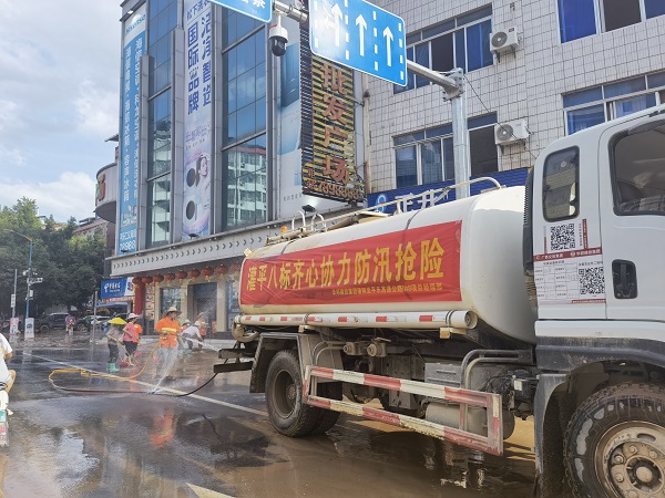 在栗木镇,灌平路面二标积极支援良溪村救灾活动,冲洗受灾区域道路,原来遍地泥沙的道路焕然一新,把好事、实事办到了群众的心坎上。
