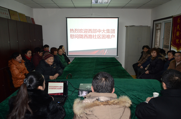 陇西路社区书记阎怀州对西部中大集团多年来为社区困难群众的帮助和慰问表示感谢。集团公司总裁助理张志强代表集团公司向社区工作人员和困难群众送上新春佳节的祝福。他说,西部中大集团在快速发展过程中,一直不忘回馈社会,积极履行社会责任,对困难群众进行帮扶,这是义不容辞的责任,今后,将继续进行扶贫助困的活动,为社区互助互爱,为社会和谐发展而努力。