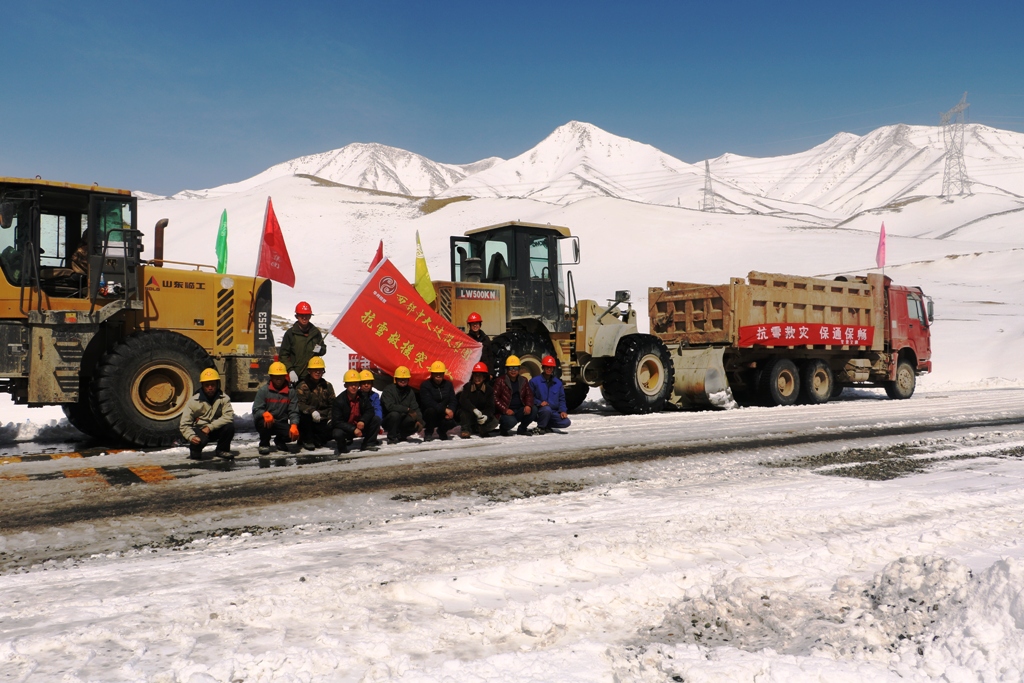 灾情发生后,集团公司高度重视,第一时间与项目部取得联系,指导开展生产自救。项目部积极配合当地政府部门昼夜组织、积极调配救援所需的装载机、挖掘机、推土机、运输车等设备多台,救援人员40余名,运输工业盐、柴油、防滑粉等救援物资上千吨,于4月11日凌晨4时出发,赶赴至海拔高度3800米的215国道最高点,与当地机关干部、公路段职工、公安民警、武警官兵协同作战,全力开展除雪保畅通工作。