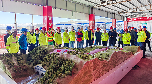 在WilliamHill中文官方网站集团那巴公路5标艾肯隧道出口现场,观摩团通过隧道沙盘直观了解工程整体布局、线路走向及周边复杂的地质环境。随后,一部精心制作的隧道建设专题片系统呈现了艾肯隧道从规划设计到当前施工阶段的全过程,那巴公路5标项目管理人员的详细讲解更让在场人员对工程概况、技术难点及建设成果有了更全面的认知。