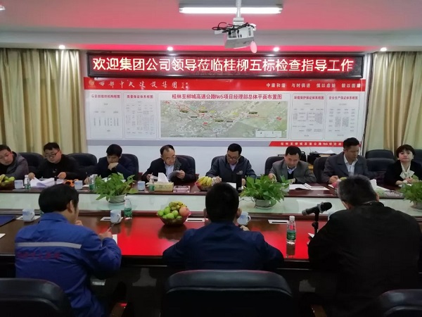 3 月 12 日至 15 日,西部中大建设集团总裁杨川、首席财务官莫庆鹏、总工程师严培武及各中心负责人深入桂柳高速各项目,调研项目施工生产情况,组织落实“主要领导下一线”活动,听取项目管理情况的汇报,了解劳务队伍的困难,切实解决施工中的实际问题。
