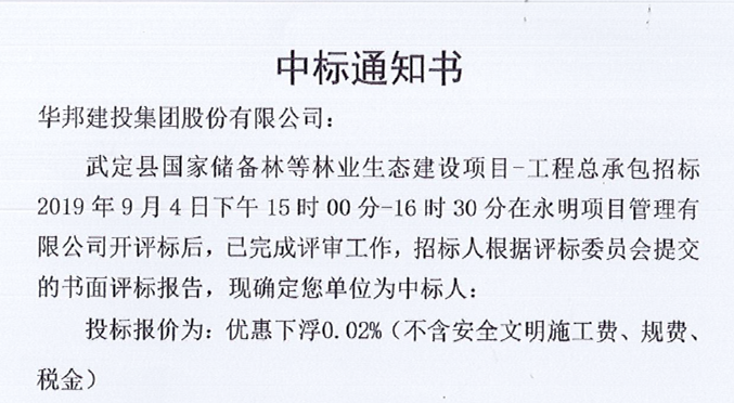 武定县国家储备林等林业生态建设项目中标通知书
