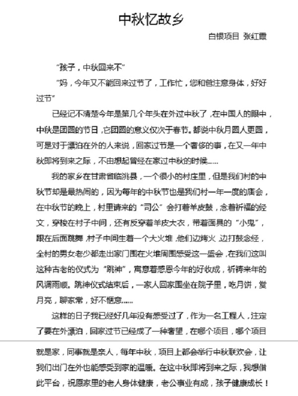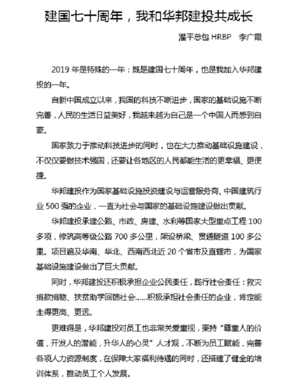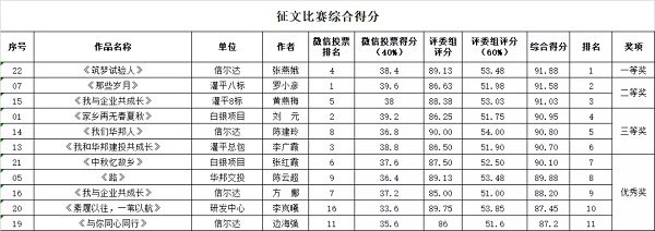 为庆祝新中国成立70周年,扎实开展“不忘初心、牢记使命”主题教育,进一步激发广大员工的爱国情怀和敬业奉献的精神,集团公司开展了征文比赛,现已落下帷幕。在选手们的努力拉票及评委们对参赛作品的认真审评后,比赛结果出炉啦!
