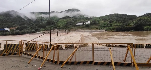 暴雨倾泻,河水陡涨,便道滑塌,便桥淹没。受连日强降雨影响,桂柳三标1、2号便桥被洪水淹没,为保证周边居民以及行人、行车安全,项目领导积极组织人员对1、2号便桥水势24小时实行动态监视,桥头加设禁止行人通行防护栏。