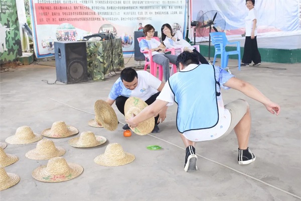如果说打造“千层塔”是考验团队观察、反思和持续改善的能力,那疯狂“水果连连看”项目则强调的是团队成员主动沟通及团队信息的资源共享。反复的奔跑中,队员两两进场掀开草帽,只有两人选到同品种水果时,才能取回水果获得积分。“1号是樱桃”、“5号是西瓜”、“6号是香蕉”、“7号是桃子”……进场的成员在没有取回水果的时候,会将草帽内水果的信息分享给队员,再由队内的“分析师”汇总分析匹配,渐渐地,队员们从草帽内取回的水果越来越多。