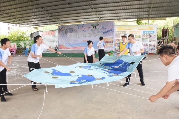 团建高潮是“环游世界球”项目,它要求全队配合协作使世界球按照一定的规则路线,从起点到终点,要求世界球在运行过程中不能掉落。就像华邦交投身为WilliamHill中文官方网站一体两翼中的投资翼,不仅需要犀利的投资眼光,还需要做好风险评估、保持高度的危机感。一声哨响,所有队员在队长的带领下,拉起世界球地图的边缘,慢慢的让世界球在地图内滚动。有时用力过猛导致球体落地,队员也毫不泄气,短暂的总结分析后又重新开始。炎热的天气让所有队员们都汗流夹背,但他们顾不上擦拭,精神高度集中,双手紧握控制绳,双眼紧紧盯着滚动的世界球,慢慢地、慢慢地,世界球从起点一点点的滚向了终点。