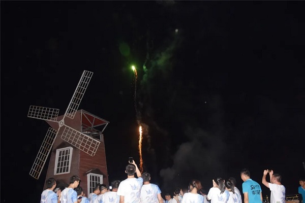 晚上的聚餐和生日会,则给整个团建活动增添加了一抹温馨的气息。大家摆起长桌宴,伴着徐徐江风,一起举杯、一起观笑,一同高歌、一同起舞。最后,活动在夜空中绽放的烟花里画上句号。