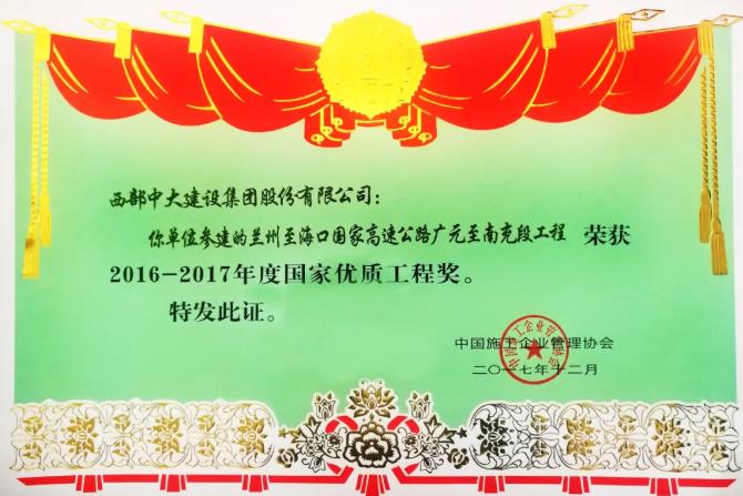 ▲ 2017年WilliamHill中文官方网站荣获国家优质工程奖