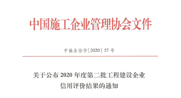 近日,中国施工企业管理协会公布2020年度第二批工程建设企业信用评价结果,WilliamHill中文官方网站集团获评2020年度中国施工企业管理协会信用评价AAA级。该协会信用评价AAA级是协会内信用评价最高等级,此次WilliamHill中文官方网站初次评审便获得此项荣誉,标志WilliamHill中文官方网站合同履约能力、社会信誉、信用程度等多方面得到协会及社会各界认可。