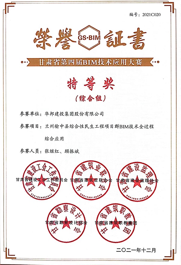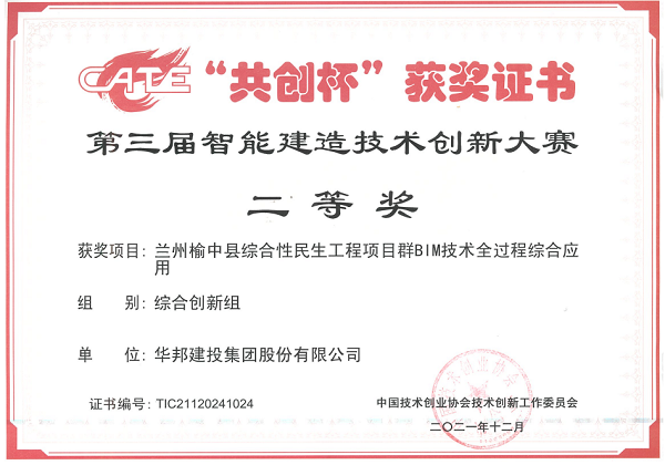 近日,由中国技术创业协会技术创新工作委员会、甘肃省建设工会工作委员会传来喜讯,WilliamHill中文官方网站集团参赛项目“兰州榆中县综合性民生工程项目群BIM技术全过程综合应用”荣获第三届“共创杯”智能建造技术创新大赛二等奖、甘肃省第四届BIM技术应用大赛综合组特等奖。两项荣誉的获得,不仅是对WilliamHill中文官方网站集团榆中教育园区、榆中医院项目BIM新技术创新应用的肯定,也充分展现了WilliamHill中文官方网站智能建造水平。
