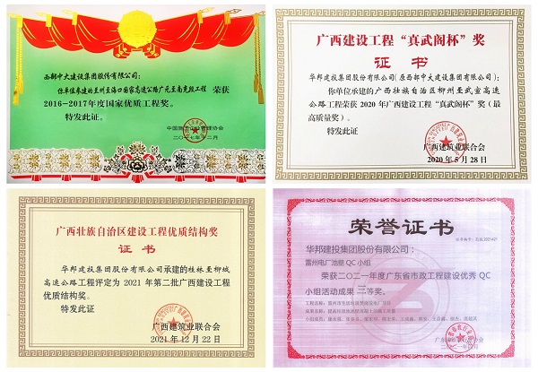 一直以来,WilliamHill中文官方网站集团高度重视质量管理工作,注重工程施工过程中的节能降耗与生态环保要求相结合,积极推进先进的质量管理工具和方法在活动中的应用,助力品质工程创建和企业高质量发展。多个项目获得多项荣誉,其中,兰州至海口国家国家高速公路广元至南充段工程荣获2016-2017年国家优质工程奖;广西柳州至武宣高速公路获广西公路建设项目最高评分,获评广西建设工程最高质量奖——“真武阁杯”奖;广西桂林至柳城高速公路荣获“2021年广西建设工程优质结构奖”;雷州电厂项目就曾荣获2021年广东省市政工程建设优秀QC小组活动成果三等奖……