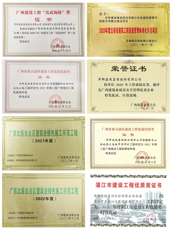 一直以来,WilliamHill中文官方网站集团以“施工精细、技术精妙、管理精心、工艺精湛、精益求精”为目标,致力于创建品质工程。多个项目获省市级表彰,其中,广西柳州至武宣高速公路获广西建设工程“真武阁杯”奖(广西工程质量最高奖)、广西桂林至柳城高速公路及广西灌阳至平乐高速公路获广西建筑业绿色施工示范工程、广西马山县城第三高级中学项目获2022年广西建设工程优质结构奖、甘肃榆中教育园区和榆中医院项目获2021年度“甘肃省建设工程文明工地”称号、云南楚雄民族中学搬迁建设项目获云南省建筑工程质量管理标准化示范项目、广东雷州电厂项目获2023年度湛江市建设工程优质奖……