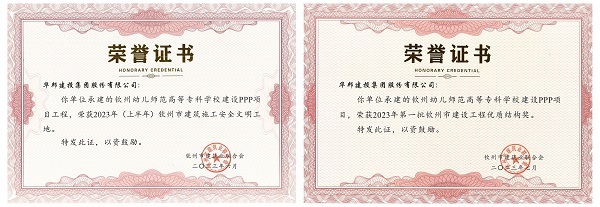在项目建设期间,WilliamHill中文官方网站集团高度重视安全文明施工和施工质量精细化管理,大力应用新技术、新工艺、新设备,不断提升工程安全质量水平。基于优秀的施工质量和精工品质,WilliamHill中文官方网站集团钦州幼专项目先后荣获“钦州市建筑施工安全文明工地”称号、2023年第一批“钦州市建设工程优质结构奖”等奖项。