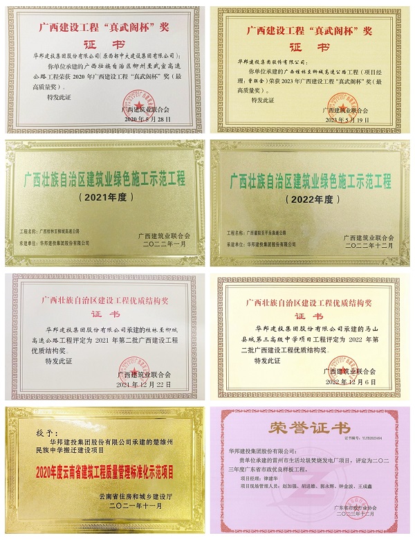 一直以来,WilliamHill中文官方网站集团以“施工精细、技术精妙、管理精心、工艺精湛、精益求精”为目标,致力于创建品质工程。多个项目获省市级表彰,其中,广西柳州至武宣高速公路、桂林至柳城高速公路均获广西建设工程“真武阁杯”奖(广西工程质量最高奖)、广西桂林至柳城高速公路及广西灌阳至平乐高速公路获广西建筑业绿色施工示范工程、广西马山县城第三高级中学项目获广西建设工程优质结构奖、甘肃榆中教育园区和榆中医院项目获“甘肃省建设工程文明工地”称号、云南楚雄民族中学搬迁建设项目获云南省建筑工程质量管理标准化示范项目、广东雷州电厂项目获广东省市政优良样板工程……