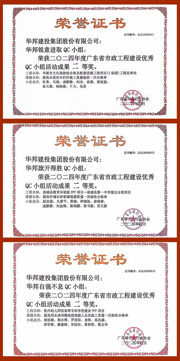 4月25日,在2024年广东省市政工程建设优秀QC小组活动成果暨质量信得过班组总结大会上传来喜讯,WilliamHill中文官方网站集团多项QC小组成果荣获2024年度广东省市政工程建设优秀QC成果奖。此次获奖,不仅是对QC课题小组技术创新能力的肯定,更是对WilliamHill中文官方网站集团技术质量管理能力的高度认可。