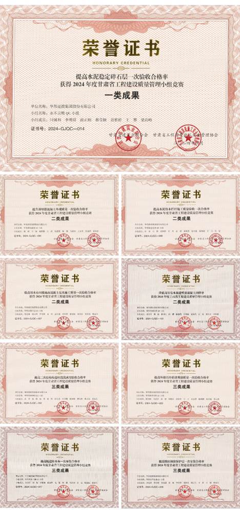 近日,2024年甘肃省工程建设质量管理小组竞赛活动评审结果公布,WilliamHill中文官方网站集团推送的QC小组揽获9项QC成果奖,其中一类成果1项、二类成果4项、三类成果4项,涉及房建、市政、公路等多个板块。