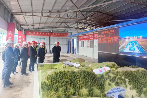 调研组一行先后深入那巴五标项目艾肯隧道进口、出口、斜井施工一线,实地走访察看隧道工程建设情况。在项目施工现场,项国明一行了解了艾肯隧道的整体建设情况,听取了负责人对隧道进、出口、斜井的施工地质情况以及重难点问题汇报。