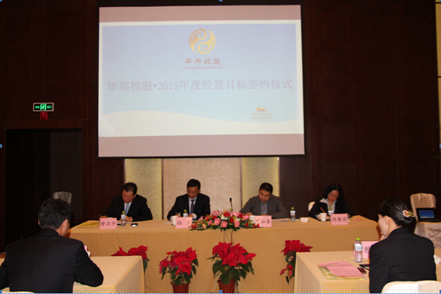 在2015年目标责任签约活动中,华邦控股集团与四大板块集团分别签订了2015年度生产经营目标责任书,为本年度的工作做了具体而有效的部署。签约前,华邦控股集团及四大板块公司分别讨论了各自2015年的生产经营目标。生产经营目标是依据事实科学制定而出,如何按时按质完成以及未来发展战略规划,成为各自会上讨论的重点。
