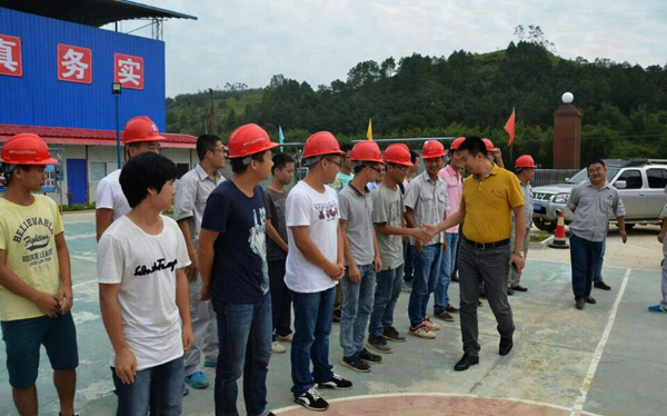 胡秉军总裁与第三工管中心员工亲切握手