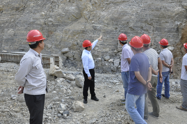 苏如春主席(左二)在岩金山高边坡防护施工现场指导