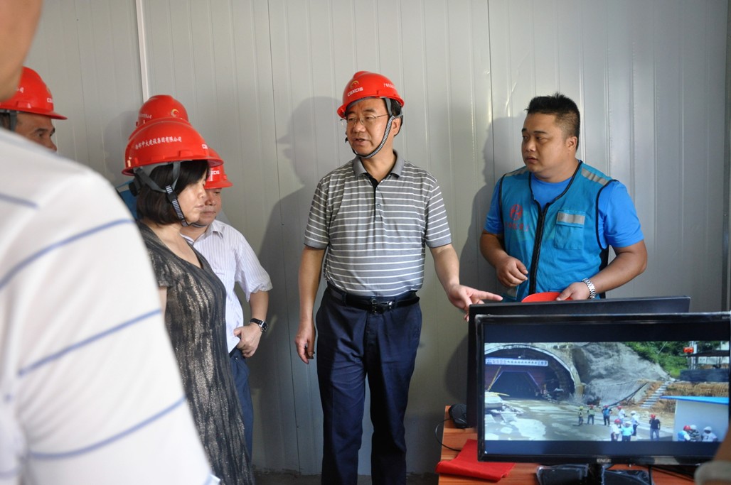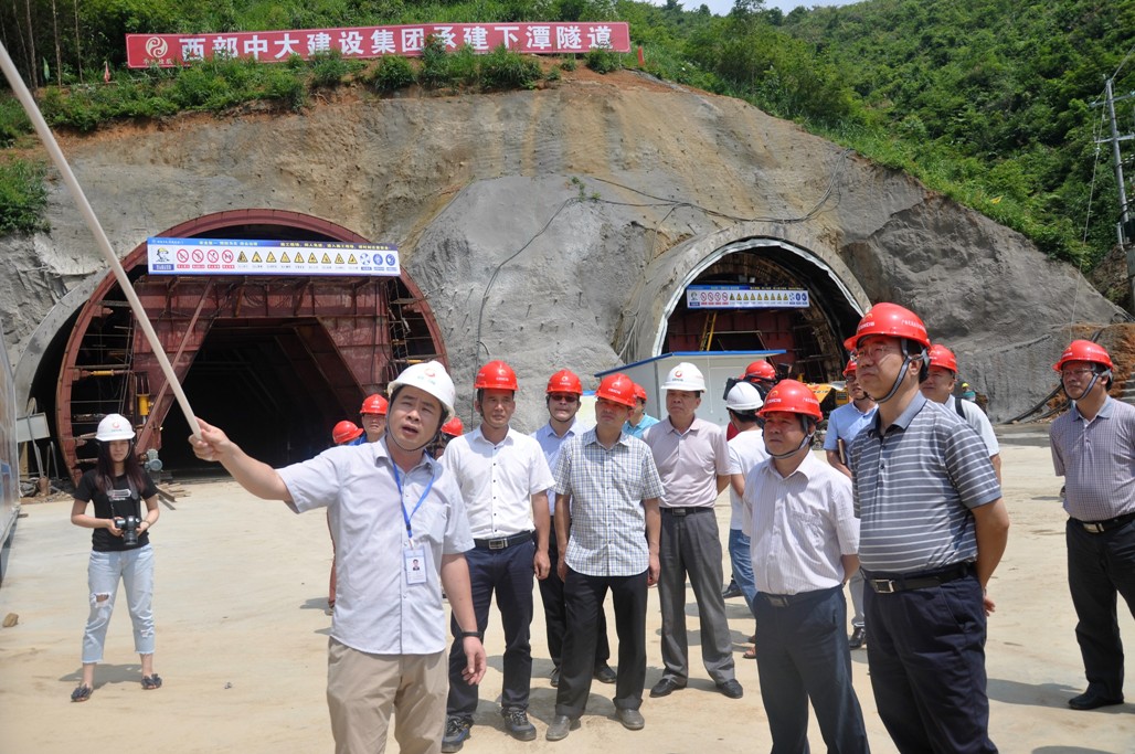 6月7日,梧州市委副书记、市人民政府市长朱学庆、梧州市副市长姜云飞在万秀区副书记高洁凤、广西宏梧高速公路有限公司总工程师何华和西部中大梧州环城项目总承包部负责人的陪同下,深入集团公司承建的梧州环城项目№2合同段总承包部三工区下潭隧道施工现场调研。