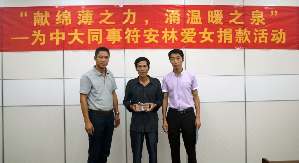 8月27日,随着集团公司一封《倡议书》的发出,员工子女符敏霞的健康问题立即牵动起西部中大建设集团广大职工的的心,集团总部、各子公司员工、各建设项目同事纷纷踊跃捐款,截止9月1日,已收到华邦控股旗下相关企业及集团公司机关、各子公司及各项目共20个单位的募捐总额共 58232.80元,于 9月1日转交到符敏霞父亲符安林手上。