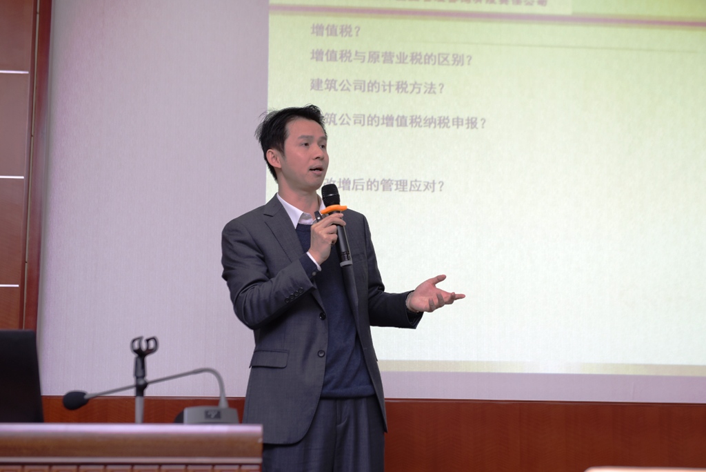 紧接着,进行了营改增及财务管理专业知识培训,集团公司邀请了广西瑞和缘税务师事务所有限公司总经理何献华主讲。何献华老师有着丰富的理论功底和实践经验,他结合建筑施工企业营改增政策解析及实操从“营改增”政策实行的背景、必要性、政策文件修订前后的区别和“营改增”后对单位现行管理理念、运营模式、计税方法、发票管理、业务处理方式等方面进行了系统的梳理,结合案例对如何应对“营改增”进行了详细解读。培训不仅丰富了参会人员理论知识,也使参会人员认识到“营改增”不只是财务事项,应更加注重前端业务管理,提前研究应对措施,为集团公司后续“营改增”工作的开展奠定基础。