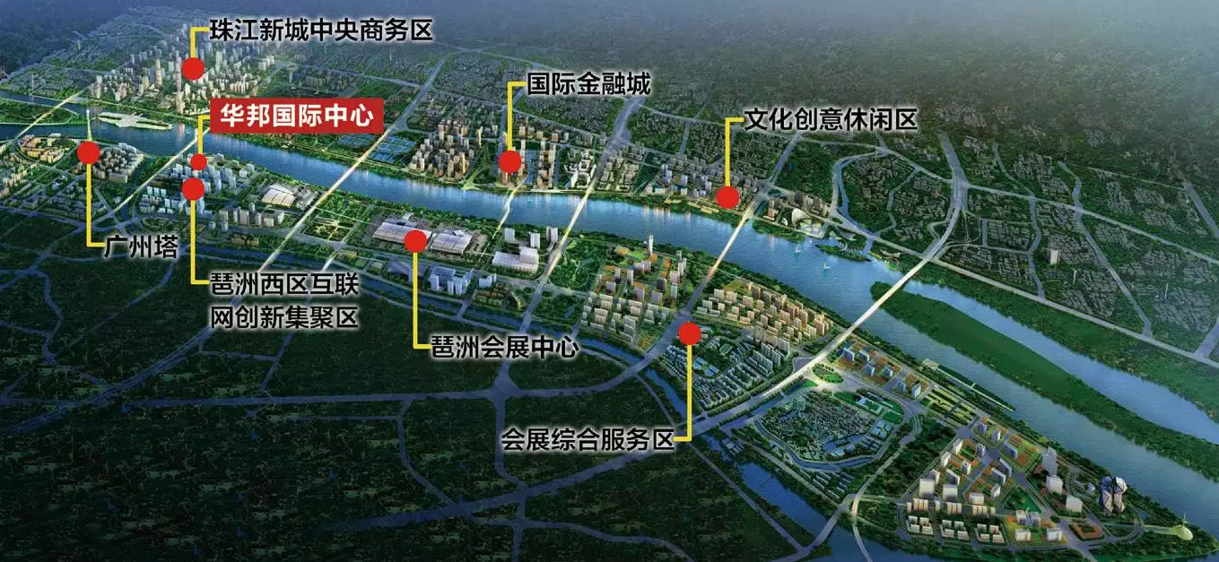华邦国际中心地理位置示意图,目前国内知名企业巨头总部已陆续进驻海珠区琶洲西区