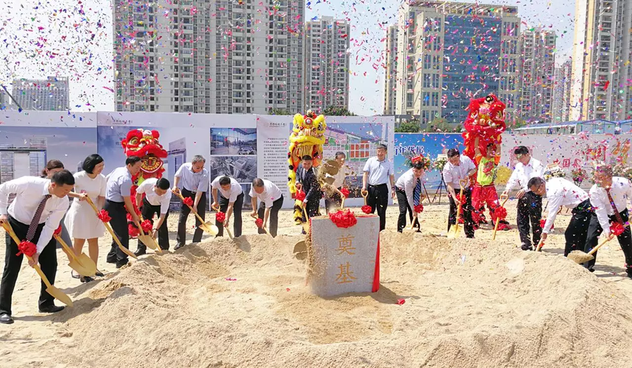 嘉宾代表与公司领导为华邦国际中心(写字楼和酒店)奠基石培土