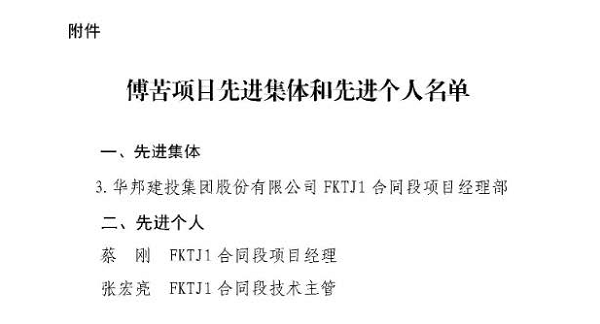 交工验收委员会在听取各参建单位工作报告并实地检查工程现场及内业资料后一致认为,该合同段已按合同及设计要求完成全部施工内容,工程质量符合国家标准,各项指标满足验收条件,同意通过交工验收。项目综合评分99.55分,在全线18家施工单位中排名第三,傅苦项目部获评“先进集体”,项目经理等多人获“先进个人”称号。