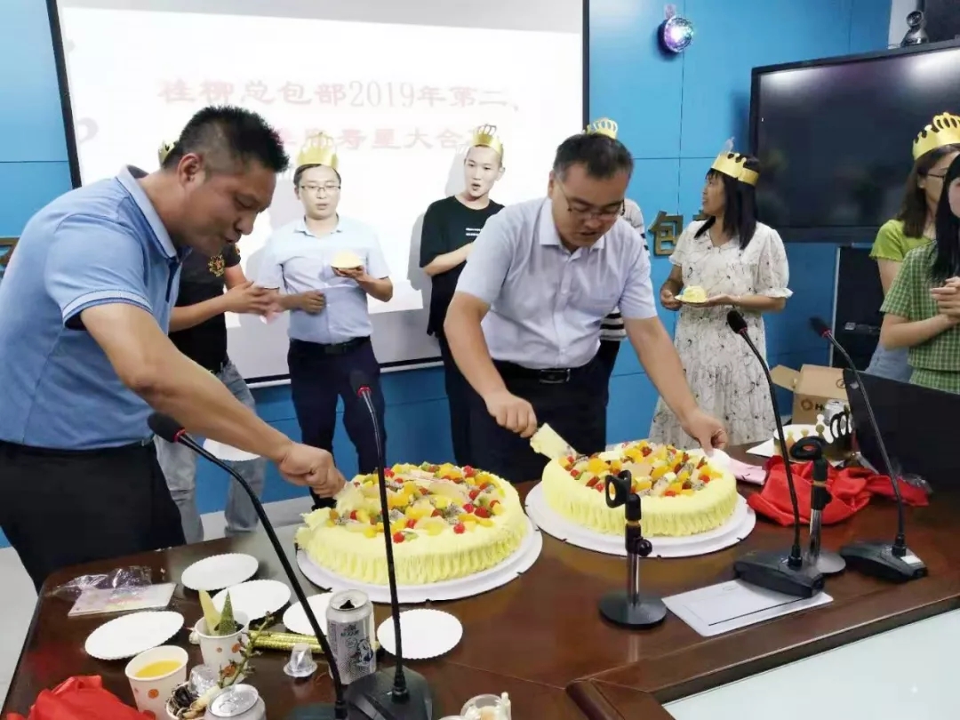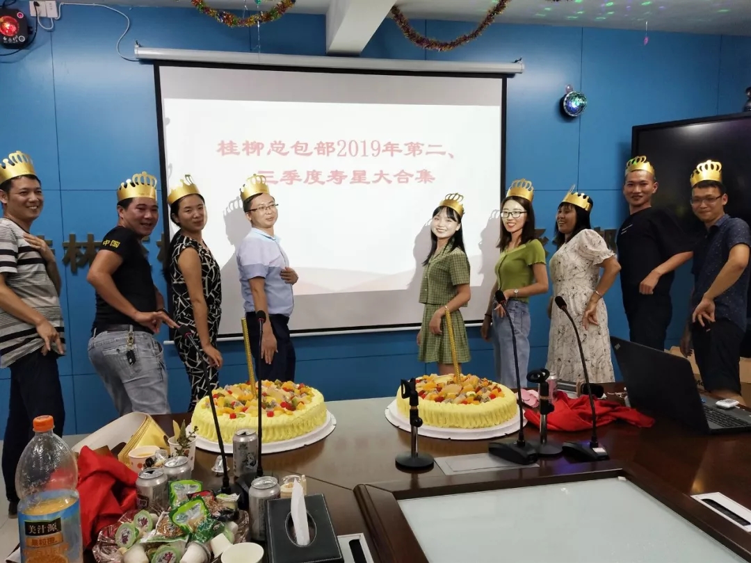 为增强企业凝聚力,增添员工生活乐趣,7月31日,广西桂林至柳城总承包部全体管理人员欢聚一堂,在不影响施工的前提下,举行了“桂柳总包2019年第二、三季度员工生日会”趣味活动。