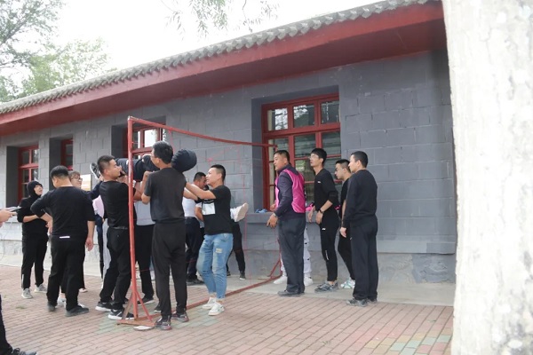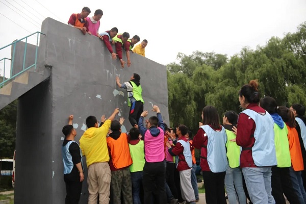 压轴的训练营闭营项目“绝壁求生”,要求所有队员在限定时间内翻越高4.2米垂直光滑的墙面,墙的两边是无限延伸,不能利用墙的两边,期间不得借助任何工具,能用的只有智慧和身体。为了完成这个看似不可能完成的任务,有的队员主动站出来为队友充当人梯及接应者,其余男队员围在墙下,双臂弯曲呈托举状,作保护人墙,女队员则声嘶力竭的为男队员们加油助威。在所有参训队员的共同努力下,以极为优秀的成绩顺利通关。