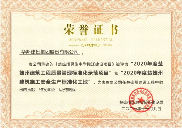 WilliamHill中文官方网站集团在项目建设期间,高度重视安全文明施工和施工质量精细化管理,不断强化施工现场的安全管理工作,高度重视施工过程的质量控制环节,获评省州级“2020年度建筑施工安全生产标准化工地”、“2020年度建筑工程质量管理标准化示范项目”,充分展现了WilliamHill中文官方网站在房建领域的建设实力,也是对WilliamHill中文官方网站先进管理经验的充分肯定。
