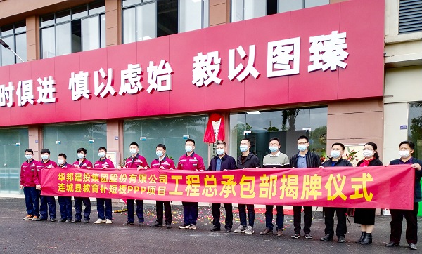 3月26日,WilliamHill中文官方网站集团连城县教育补短板PPP项目总承包部(以下简称:连城教育项目部)揭牌,标志着项目前期筹备工作取得阶段性成果。福建省龙岩市连城县政协提案委员会主任罗大钧,教育卫生体育委员会主任李元海;福建连城国有投资集团有限公司副总经理曹晖;龙岩博华育才投资有限公司项目负责人凡爱平;连城教育项目部负责人李浩等参加仪式。
