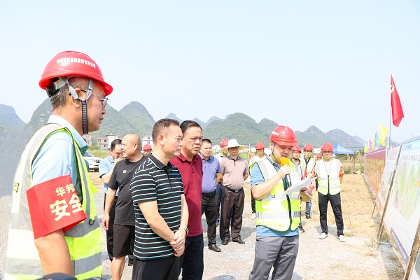 王昕(前排左二)听取桂钟高速六标项目情况汇报