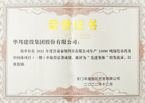 玉门泰领厂房项目获2022年度“先进集体”称号