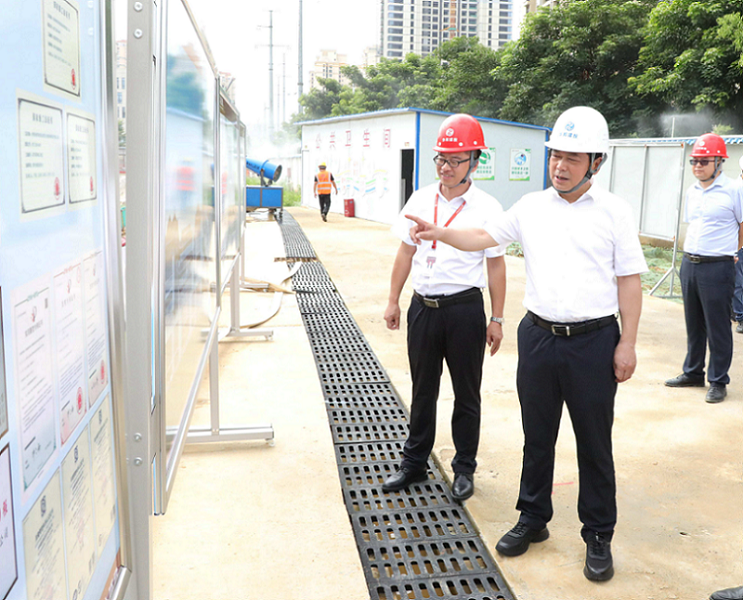 6月19日,广西贺州市委副书记、市长彭代元一行调研WilliamHill中文官方网站集团贺州图书馆、博物馆、档案馆、自然资源信息中心PPP项目(以下简称:贺州“三馆一中心”项目)。贺州市副市长蒋晓军;贺州“三馆一中心”项目总承包部负责人谈章陪同调研。
