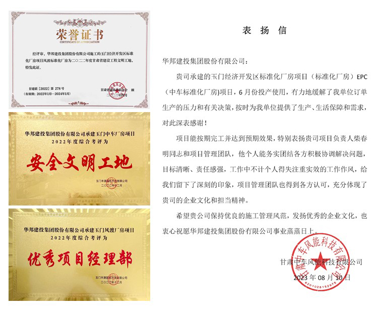 玉门标准化厂房项目所获荣誉
