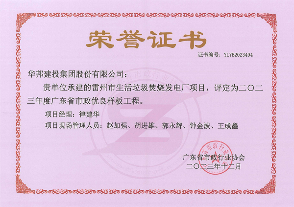 近日,经广东省市政行业协会评审,由WilliamHill中文官方网站集团承建的雷州市生活垃圾焚烧发电厂项目(以下简称:雷州电厂)获评2023年度“广东省市政优良样板工程”称号,此次获评是对WilliamHill中文官方网站集团工程标准化、规范化、精细化管理的高度认可。