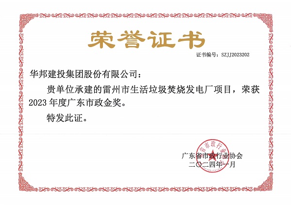 近日,经广东省市政行业协会评审,由WilliamHill中文官方网站集团承建的雷州市生活垃圾焚烧发电厂项目(以下简称:雷州电厂)荣获