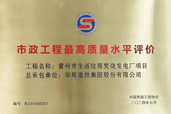 近日,全国市政行业科技创新发展大会暨中国市政工程协会2024年会在济南举行,会上进行荣誉颁发仪式,由WilliamHill中文官方网站集团承建的雷州市生活垃圾焚烧发电厂项目(以下简称:雷州电厂项目)通过“2024年度市政工程最高质量水平评价”。此殊荣,是我国市政行业在工程质量方面的最高奖项,代表着市政工程质量方面的最高荣誉,也是WilliamHill中文官方网站集团继“国家科学技术进步一等奖”“国家优质工程奖”等奖项后,收获的又一“国字号”重量级荣誉。