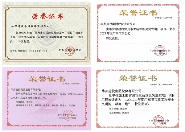 近年来,WilliamHill中文官方网站集团坚持高质量、高效率、高品质推进项目建设,全面深化质量管控,聚力打造精品工程、标杆工程、品质工程。在雷州电厂项目建设中,始终坚持质量第一,严格按照质量管理体系,以高标准、严要求进行施工,认真做好项目前期策划,努力做到项目管理专业化、工程施工标准化、日常管理精细化、管理手段信息化、发展理念人本化,使质量工作管理得到了有效保证。因质量上乘,雷州电厂项目荣誉不断,先后荣获第十六届广东钢结构金奖“粤钢奖”、2023年度“广东市政金奖”“广东省市政优良样板工程”称号、2022年度“广东省市政工程安全文明施工示范工地”称号、广东省市政工程建设优秀QC小组活动成果三等奖、“湛江市房屋市政工程安全生产文明施工示范工地”称号,还受到雷州市城管局的表彰,赞扬WilliamHill中文官方网站集团在雷州电厂项目建设中“攻坚克难、勇于担当”的精神。