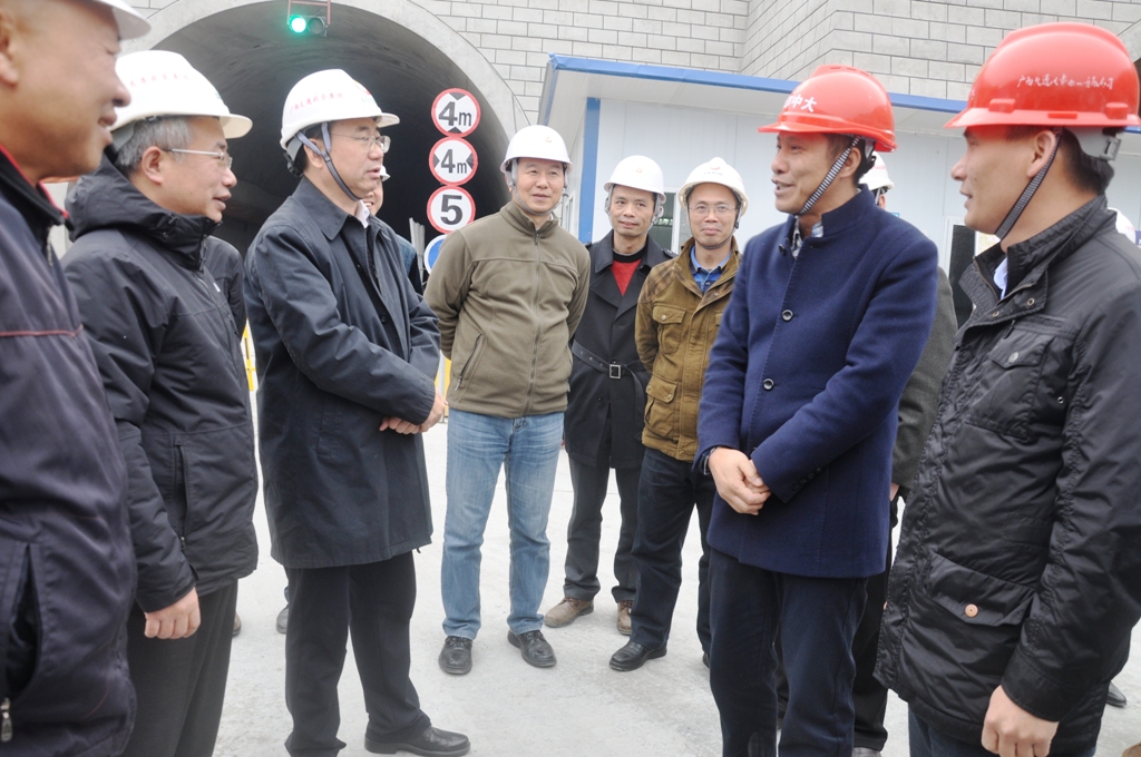 为确保梧州市环城公路工程省际通道按期通车,2月10日,梧州市市委常委、市委副书记、市长朱学庆在广西交投集团副董事长、总经理刘可、副总经理廉向东、广西高投公司董事长秦育彬等领导的陪同下对集团公司承建的梧州市环城公路工程省际通道施工现场进行调研,调研组一行听取了关于省际通道目前施工情况、存在的难点问题和下一步工作思路的汇报。