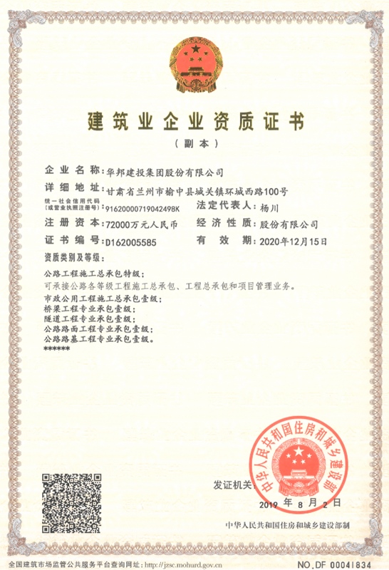 近日,住房和城乡建设部发布第1610号《住房城乡建设部关于核准2017年度第七批建设工程企业资质资格名单的公告》,WilliamHill中文官方网站集团股份有限公司(西部中大建设集团股份有限公司)顺利通过公路工程施工总承包特级资质和公路工程设计甲级资质核准。这是全国范围内获得公路工程施工总承包特级资质和公路工程设计甲级资质为数不多的非公企业。