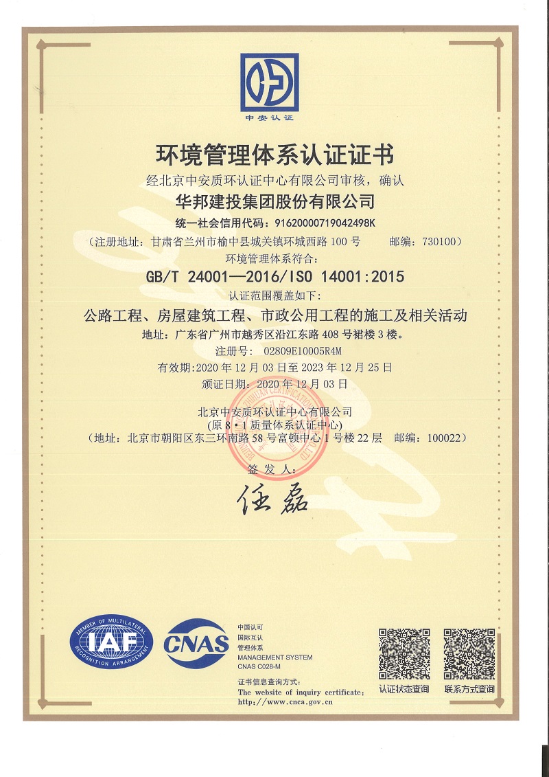 三大管理体系认证证书